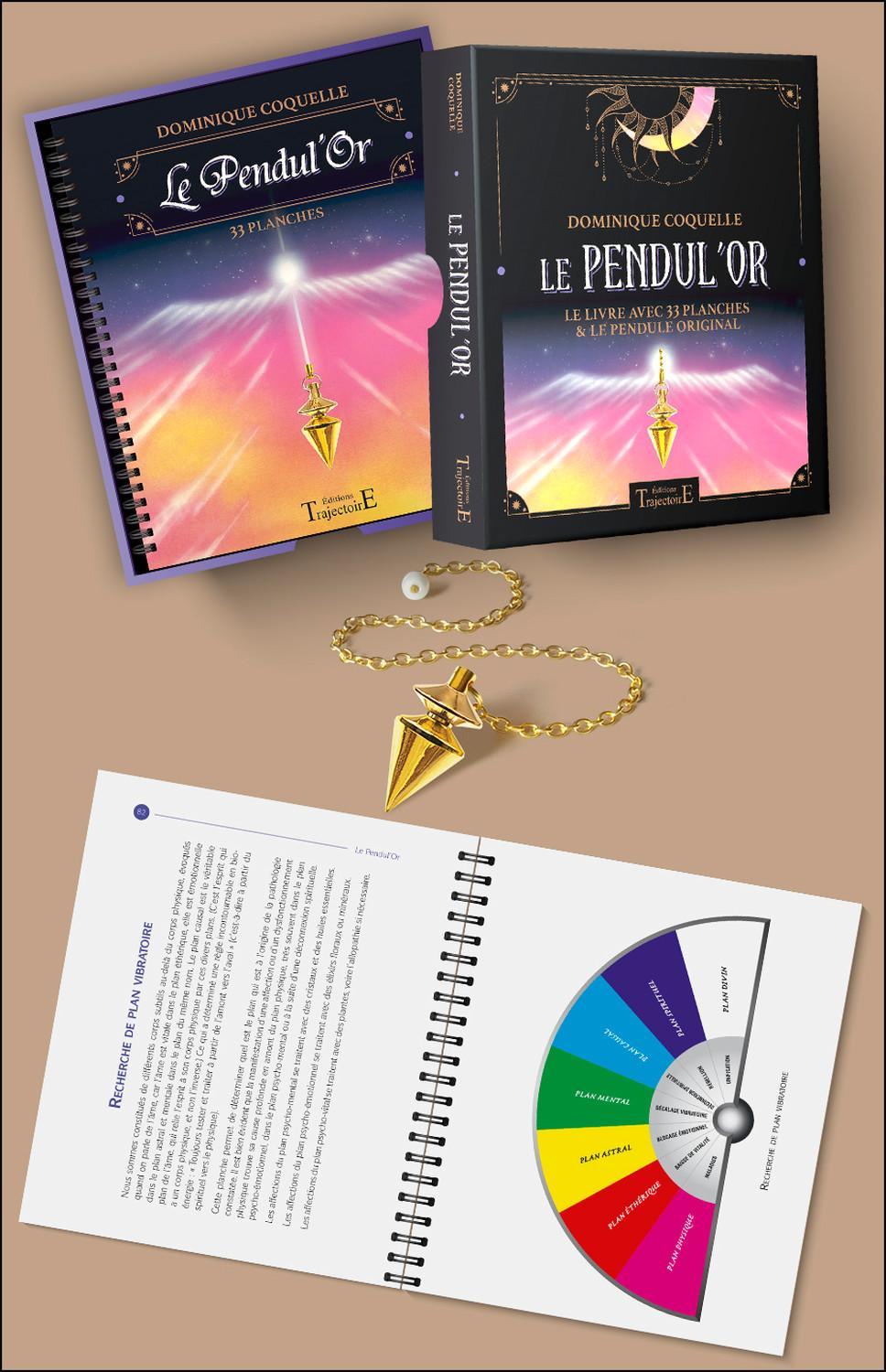 Dominique Coquelle propose, en exclusivité dans ce coffret, un extrait de son grand livre « Le Pendul'Or 200 planches », l'ouvrage de radiesthésie le plus réputé en langue française. Découvrez comment être canal, tenir le pendule, interpréter ses mouvements, poser vos questions, etc. Grâce aux 33 planches indispensables et à l'authentique pendule en laiton doré inclus dans ce coffret, obtenez des réponses extrêmement précises. Livre, planches et pendule sont des outils professionnels à votre disposition pour vous aider à devenir un radiesthésiste confirmé.