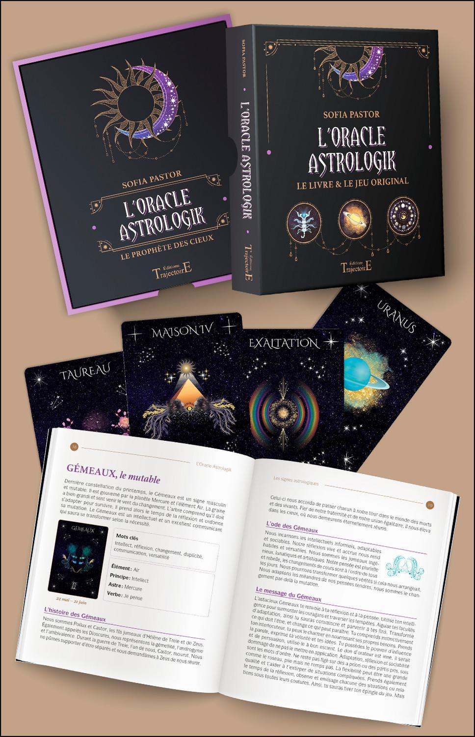 L'Oracle Astrologik permet de réaliser des prédictions et de répondre à des questions précises quant à la vie matérielle, professionnelle et financière, à l'avenir amoureux à la santé. L'astrologie analytique, comme approche de la psychologie humaine, est également un levier du développement personnel qui aide à mieux comprendre les parts d'ombre et de lumière de chacun, à appréhender les archétypes et la psyché humaine, à trouver des réponses mystiques liées au karma, aux vies antérieures ou encore aux rencontres destinées. Les neuf méthodes de tirage, aussi précises que novatrices, offrent un éventail de séances divinatoires ou karmiques, annuelles et solaires, ou encore mensuelles et lunaires. L'Oracle Astrologik permet d'appréhender la science des étoiles de manière ludique. Il est un guide spirituel, le prophète des cieux.
