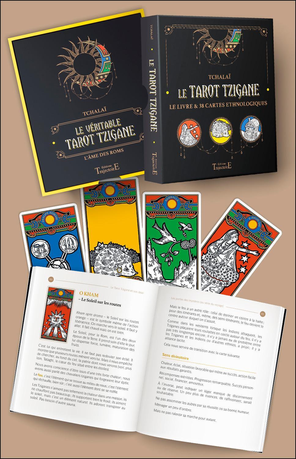 Le célèbre « Tarot Tzigane » de Tchalaï est de nouveau disponible ! Tchalaï a tenu à offrir ces images au monde pour montrer ce que l'âme des Roms renferme de trésors universels. Elles appartiennent au patrimoine de toute l'humanité. Découvrez comment ces cartes si originales et puissamment intuitives vous révèlent le sens de votre présent et jettent une lumière inattendue sur ce qui vous attend. Le livre qui accompagne ces cartes présente de nouvelles méthodes de tirage et de très nombreux exemples d'interprétation. Ces cartes, publiées en 1984, sont indisponibles depuis de nombreuses années et sont très recherchées en occasion.