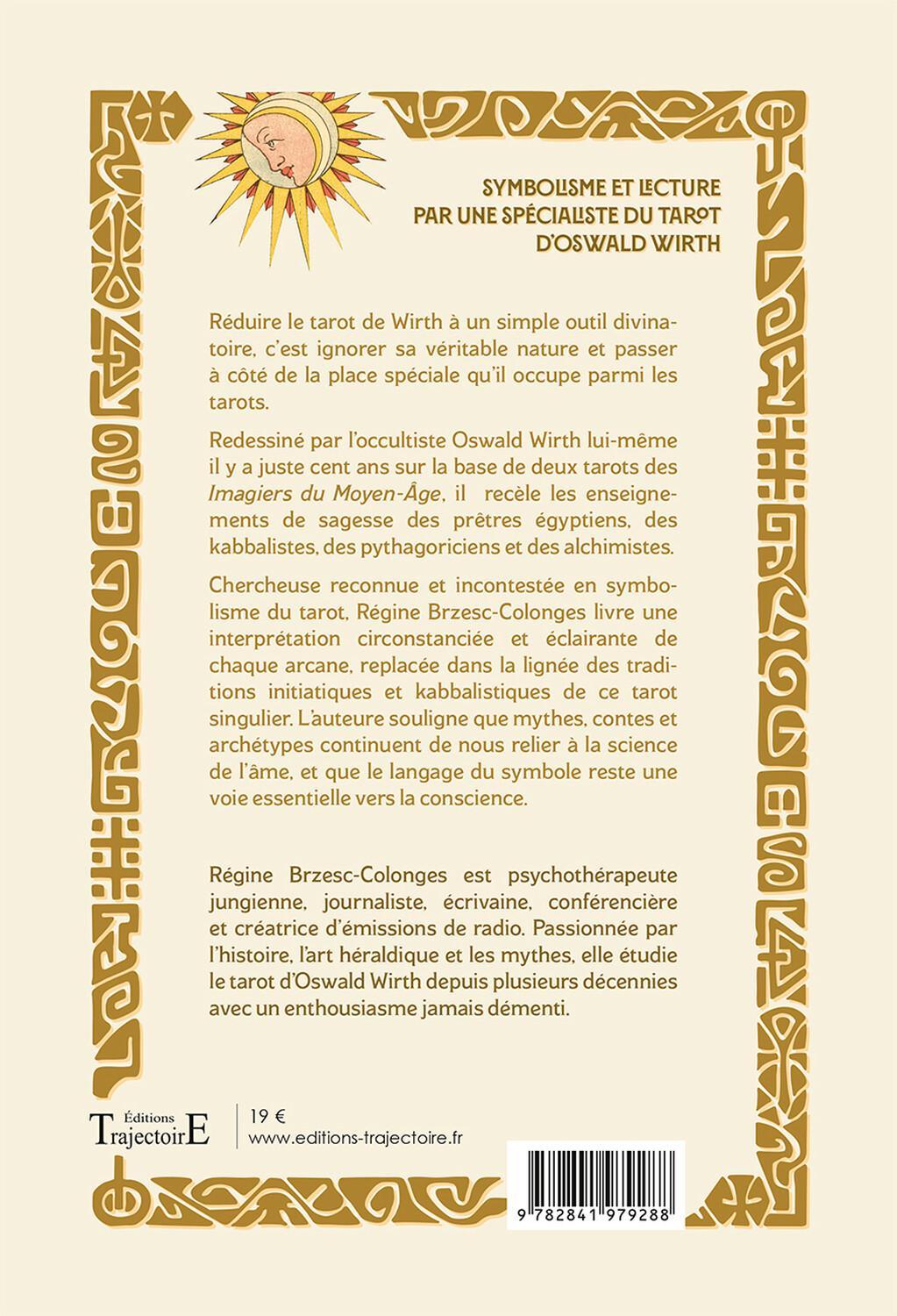 Réduire le tarot de Wirth à un simple outil divinatoire, c’est ignorer sa véritable nature et passer à côté de la place spéciale qu’il occupe parmi les tarots. Redessiné par l’occultiste Oswald Wirth lui-même il y a juste cent ans sur la base de deux tarots des Imagiers du Moyen-Âge, il recèle les enseignements de sagesse des prêtres égyptiens, des kabbalistes, des pythagoriciens et des alchimistes. Chercheuse reconnue et incontestée en symbolisme du tarot, Régine Brzesc-Colonges livre une interprétation circonstanciée et éclairante de chaque arcane, replacée dans la lignée des traditions initiatiques et kabbalistiques de ce tarot singulier. L’auteure souligne que mythes, contes et archétypes continuent de nous relier à la science de l’âme, et que le langage du symbole reste une voie essentielle vers la Conscience.